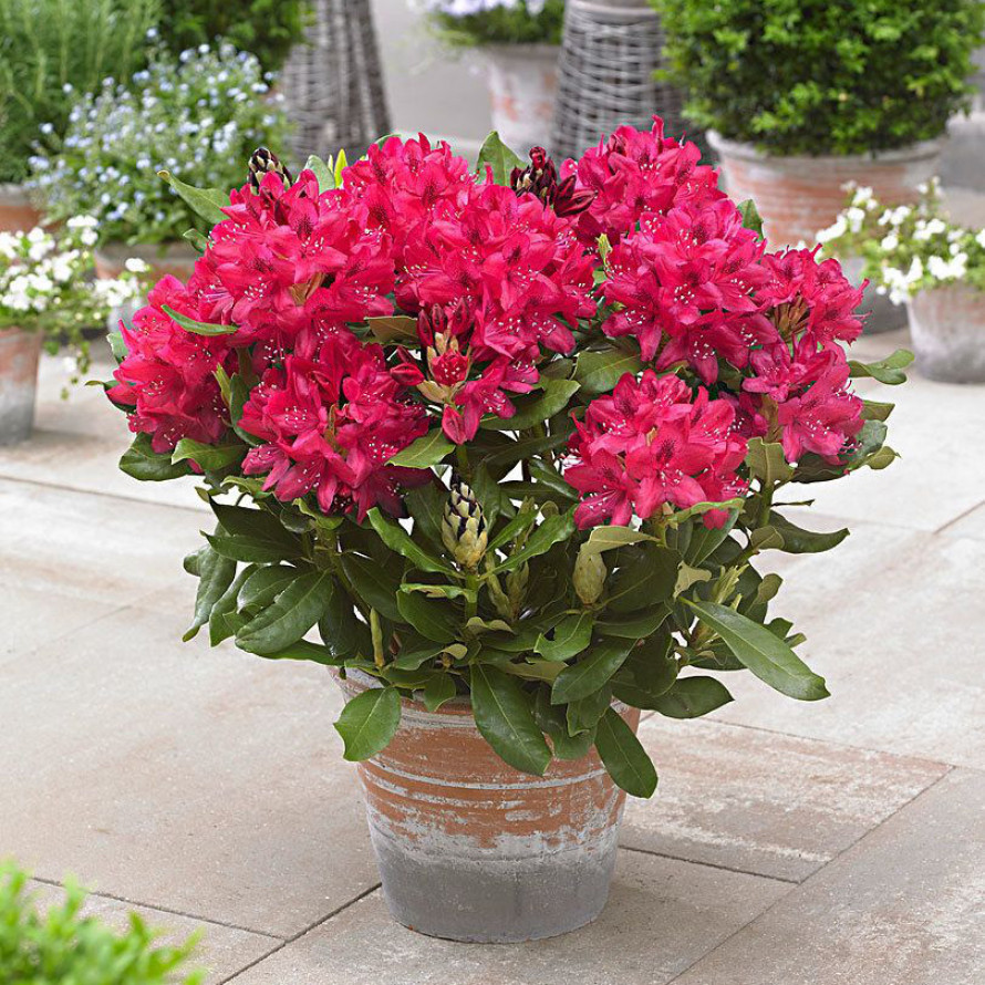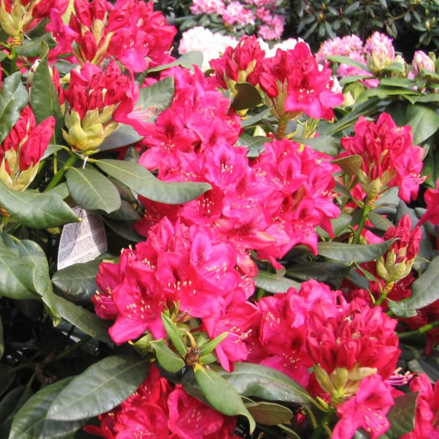 Рододендрон вечнозеленый Нова Зембла назван в честь архипелага в Северном Ледовитом океане. Цветки крупные, рубиново-красные с черным пятном и крапом на верхнем лепестке (до 6 см), без запаха, собраны в компактные соцветия по 10-12 штук.