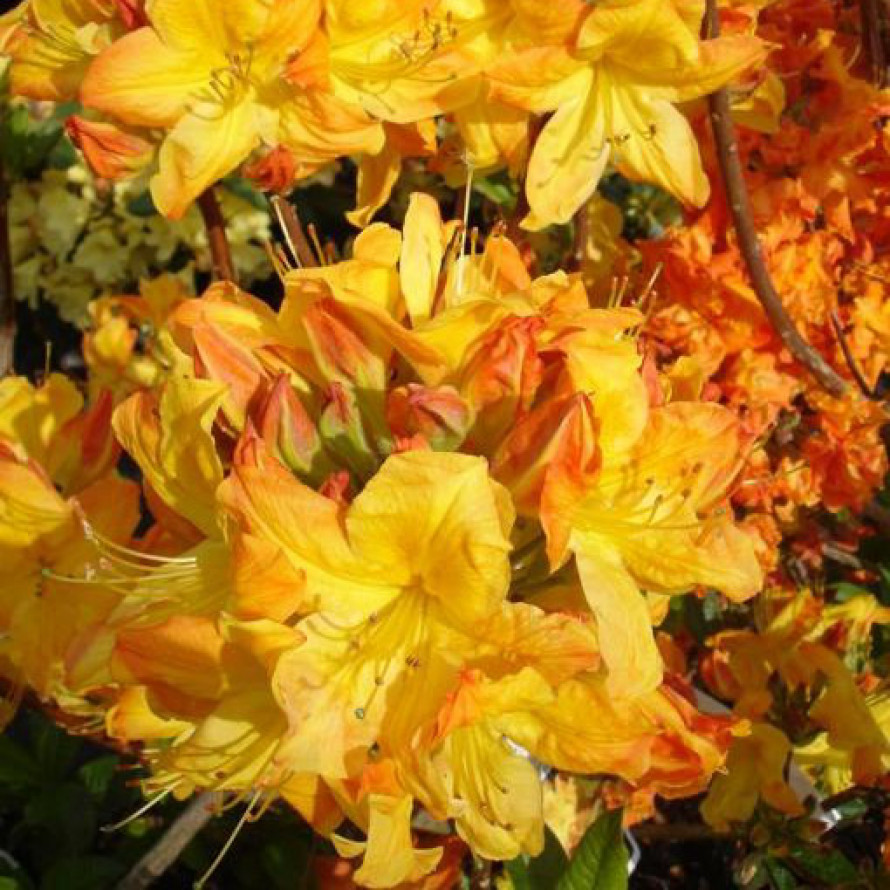 Крупные шаровидные соцветия вмещают в себя до 10 бутонов. Размер одной цветочной кисти составляет примерно 30 см. Диаметр каждого воронкообразного цветка дотягивает до 5 см. Жёлто-оранжевые цветы с более светлым горлышком и розоватыми гофрированными краями лепестков источают сильный сладкий аромат. В сердцевине крупных бутонов насчитывается по 5 тычинок. Эффектное растение напоминает сияние ночных фонарей.