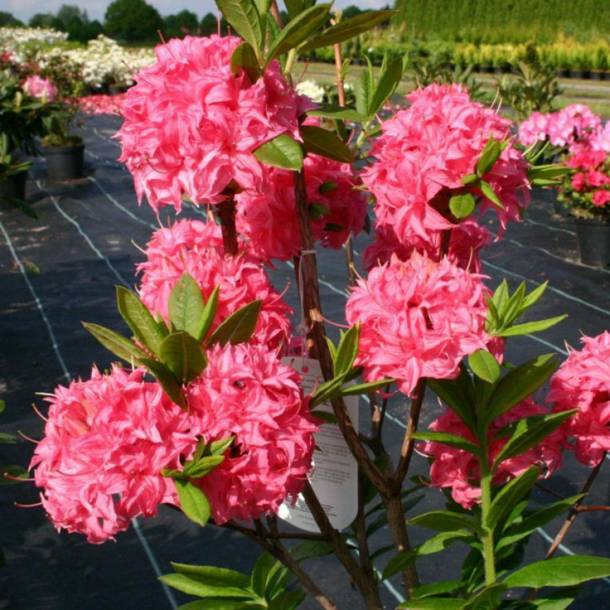 Стебли длинные, не прогибаются под тяжестью пышных цветков. Они украшены достаточным количеством кожистых листьев, которые имеют простую эллиптическо-обратнояйцевидную форму. При распускании листвы ее окраска насыщенная бронзовая, затем она становится темно-зеленой.