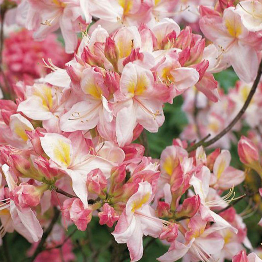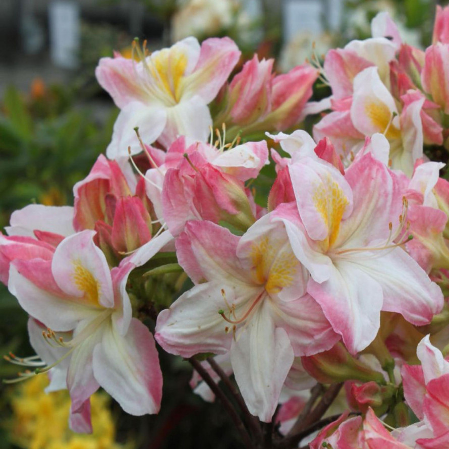 Крупные шаровидные соцветия вмещают в себя до 10 бутонов. Размер одной цветочной кисти составляет примерно 30 см. Диаметр каждого воронкообразного цветка дотягивает до 5 см. Жёлто-оранжевые цветы с более светлым горлышком и розоватыми гофрированными краями лепестков источают сильный сладкий аромат. В сердцевине крупных бутонов насчитывается по 5 тычинок. Эффектное растение напоминает сияние ночных фонарей.