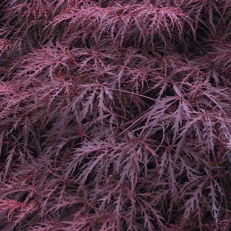 Великолепный сорт веерного клёна. Листья глубокого тёмно-красного цвета, не зеленеющие, глубоко рассечённые, весной - розоватые, осенью - ярко-алые. Вырастая примерно до 3 х 3 метров за 20 лет, он образует вертикальный цветной холм.Acer palmatum 'Inaba-shidare' идеально подходит в качестве акцента в небольшом саду.