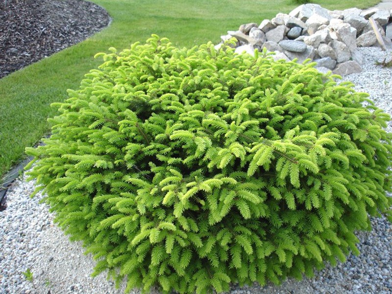 наиболее эффектно смотрятся равномерно растущие пышные ветки, покрытые коротенькими и мягкими хвоинками. По мере роста ель приобретает округлую подушковидную форму, при этом ее крона становится пышной и уплощенной.