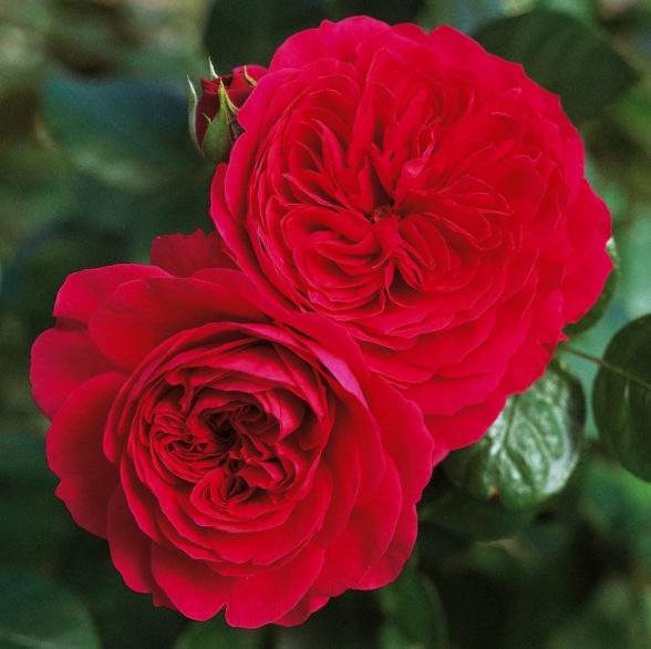 Малиново-пурпурные, крупные бокаловидные бутоны относятся к густомахровой категории, состоят из 90-100 и более лепестков. Раскрытые цветки больше похожи на старинные английские розы от 7 до 10 см в диаметре. В полном роспуске окраска теряет интенсивность, малиновые тона становятся более розовыми, полутона – более нежными, розовато-пунцовыми. Роза обладает тонким изысканным ароматом с фруктовыми нотками.
