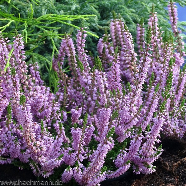 Растёт быстро и напоминает дикий вереск. Цветки лилово-розовые, многочисленные, собраны в короткие соцветия.
