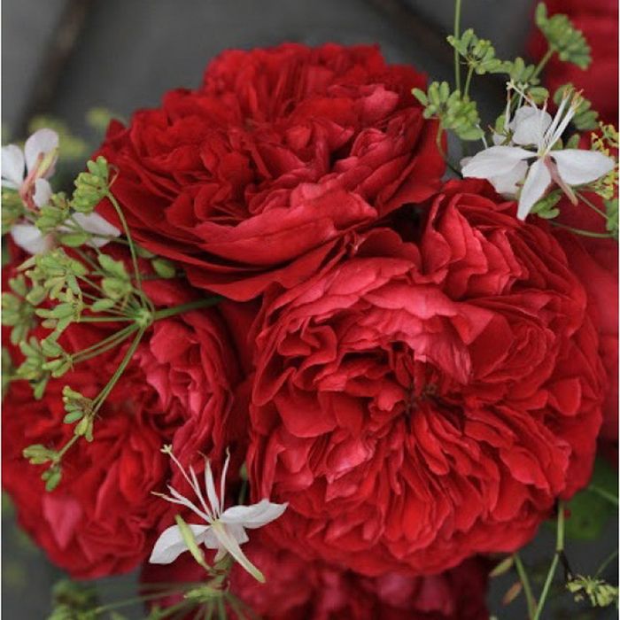 Цветки крупные, диаметром 12-13 см, густомахровые (90-100 лепестков), ярко-красные, с очень интенсивным ароматом.