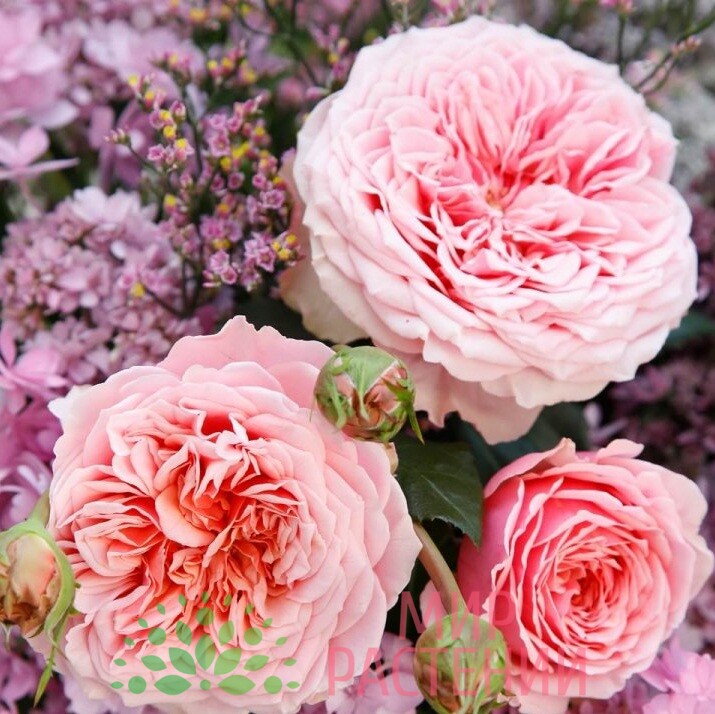 Роза из коллекции «Eleganza Antique». Цветки диаметром 8-10 см, густомахровые, старинной (ностальгической) формы, светло-розовые, в небольших соцветиях, очень устойчивые к атмосферным явлениям.