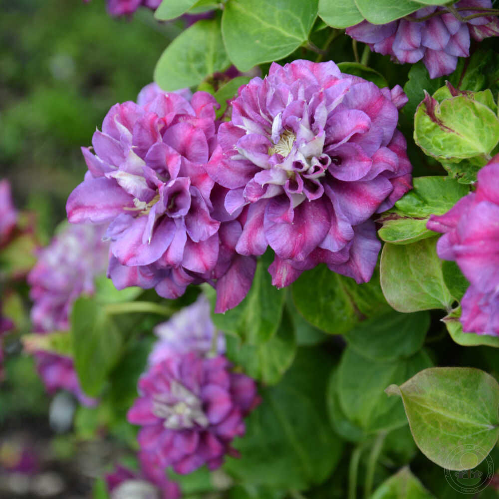 Клематис Королева Бона — обильно цветущий сорт польской селекции. Цветки 9-12 см в диаметре, на прошлогодних побегах махровые и на побегах текущего года полумахровые и простые, появляются на расстоянии 60 см от основания растения. Лепестки фиолетово-пурпурные с отчётливой пурпурной полосой, по мере отцветания светлеют.