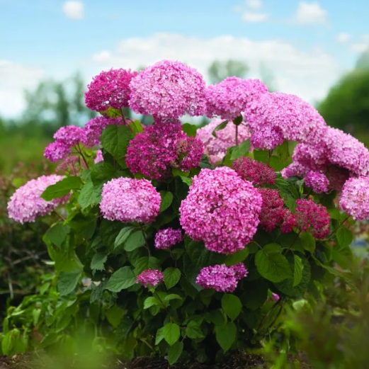 Первый в мире розовый сорт гортензии древовидной. Уже при роспуске его цветок имеет верхнюю сторону лепестка бледно-розовую, а нижнюю - тёмно-розовую, при полном распускании цветки становятся насыщенно розовыми. Но постепенно этот цветовой эффект исчезает и соцветия приобретают светлые или серовато-розовые оттенки. Высота куста 1,4-1,6 м, диаметр 1,5-1,8 м. Соцветия до 15–20 см в диаметре. Цветет с конца июня до сентября. Во время цветения кустарник разваливается.