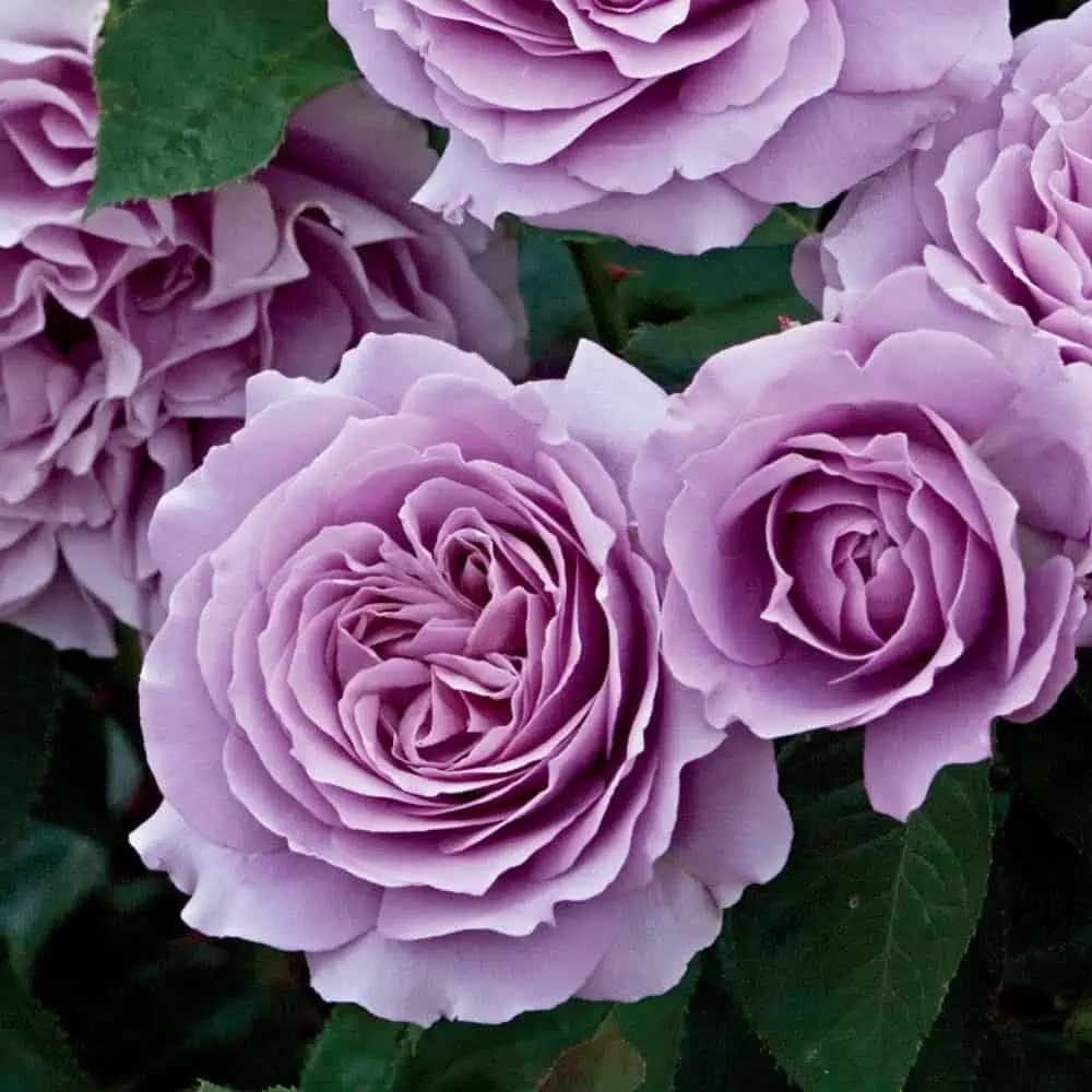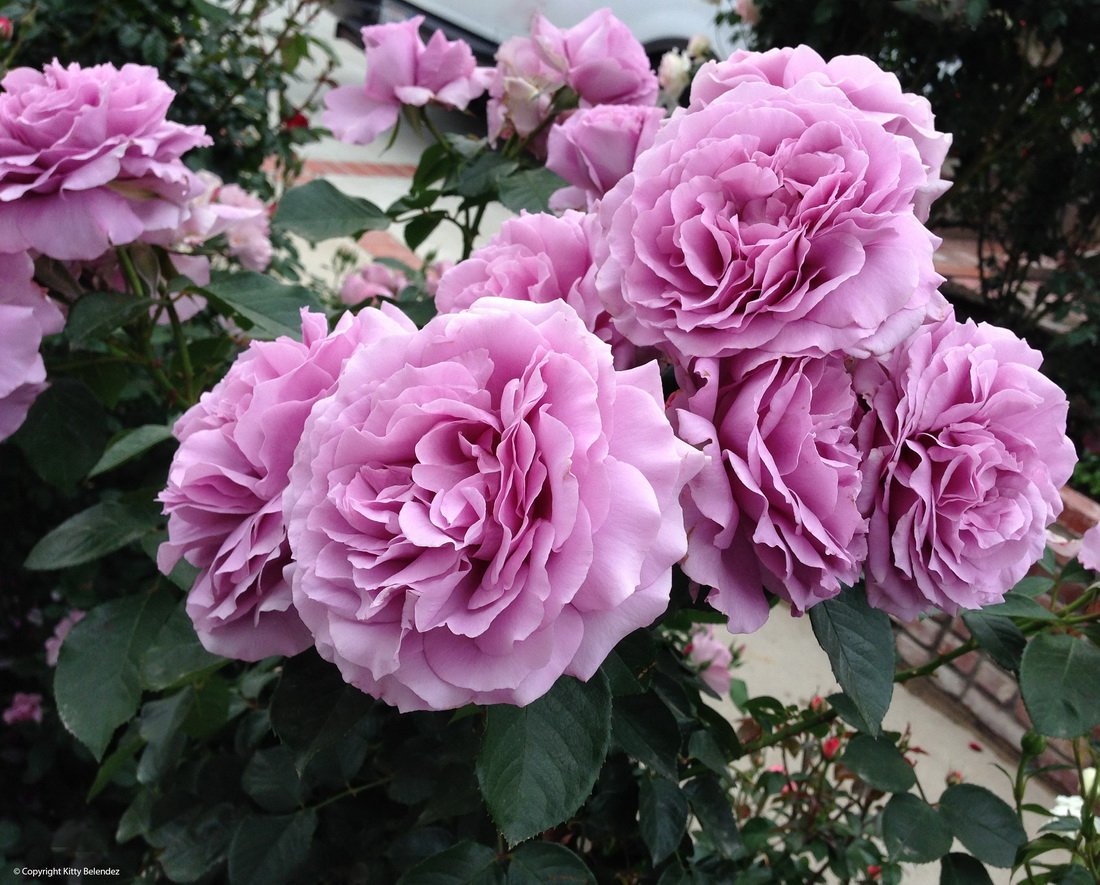 Цветки диаметром 11-12 см, махровые (35-40 лепестков), чистого ясного лавандового цвета, в малоцветковых соцветиях. Бутоны полные, яйцевидные, заострённые.