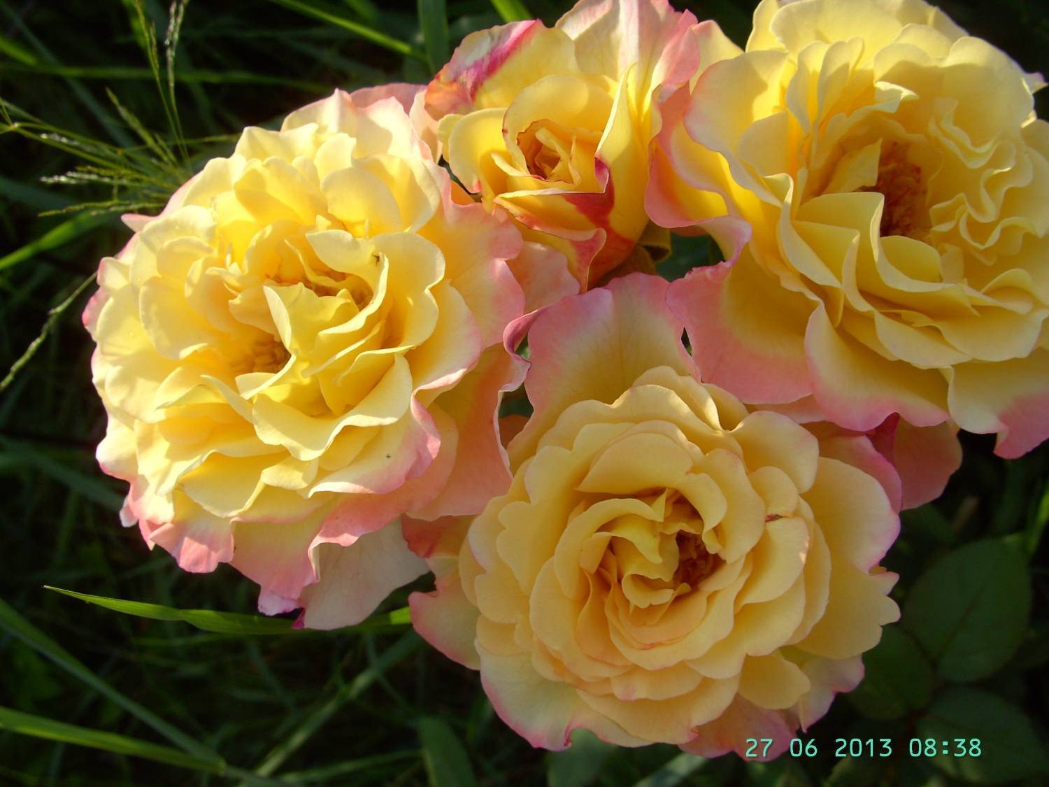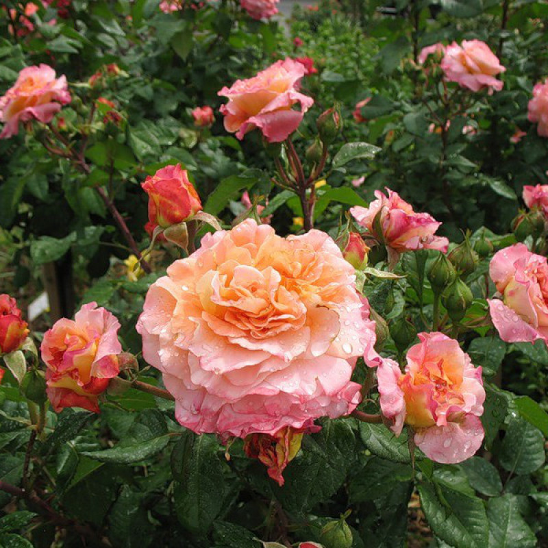 Удивительно красивая благородная роза с ностальгическими густомахровыми цветками диаметром 10-12 см. Потомок (спорт) сорта «Augusta Luise». Цветки с оживлённой игрой оттенков – между персиково-жёлтым и красноватым по краю лепестков. Цветки появляются на длинных цветоносах в зонтиковидных соцветиях средней величины, а также по отдельности. Цветение обильное. Кусты сильнорастущие, побеги прямые, тугие. Аромат сильный, фруктовый сладковатый. Используется для посадки на клумбы, маленькими группами, в «садах ароматов», для срезки в вазы.