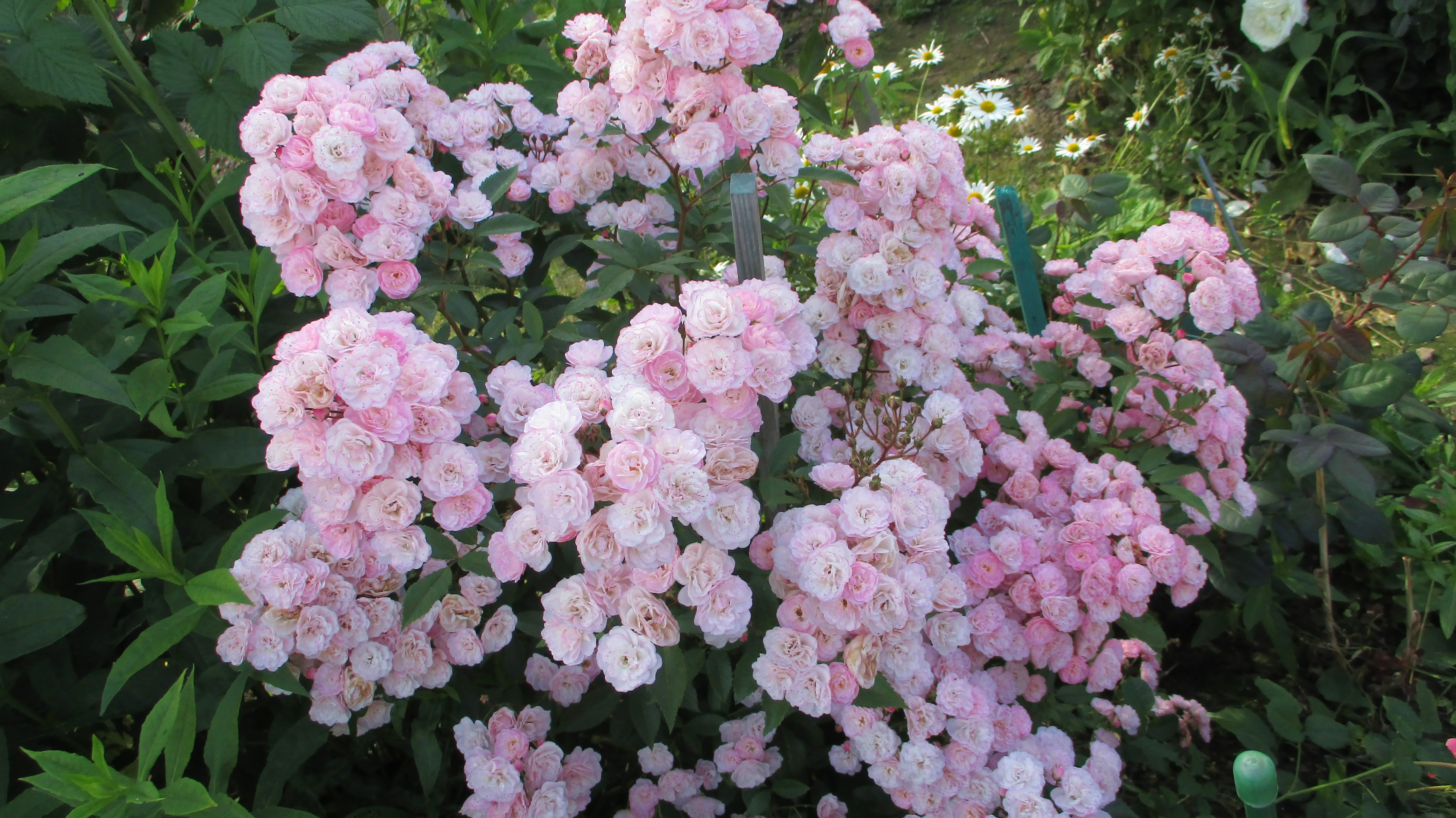 Цветки диаметром 3-4 см, махровые, элегантные, розеточной формы, розовые, в великолепных, пирамидальных соцветиях, прекрасно подходящих для срезки.